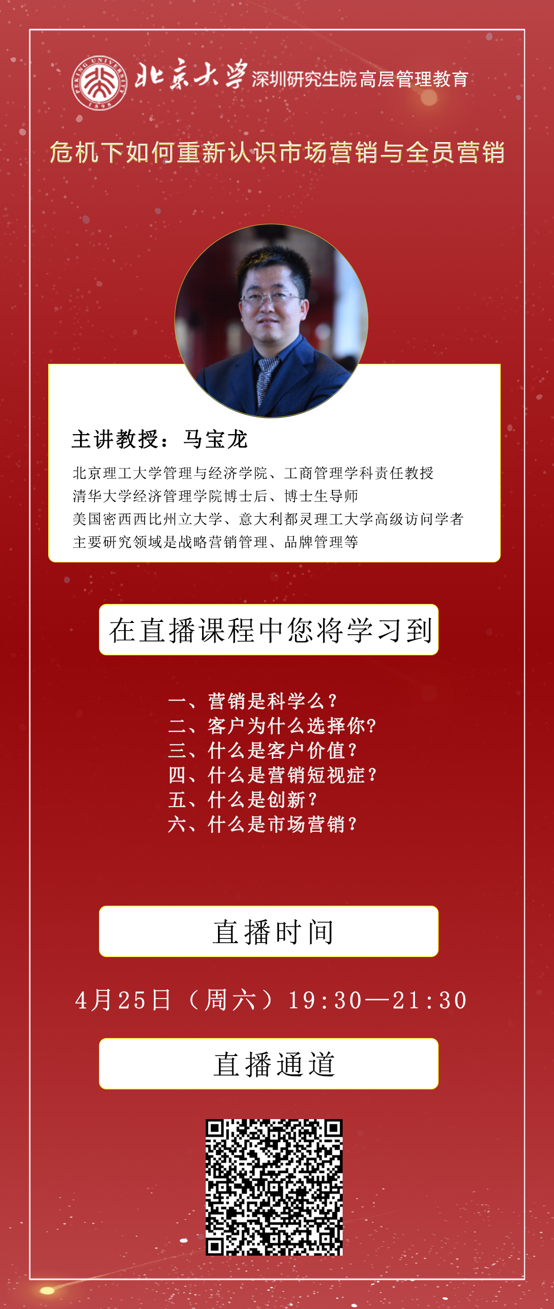 直播预告!马宝龙教授:危机下如何重新认识市场营销和全员营销